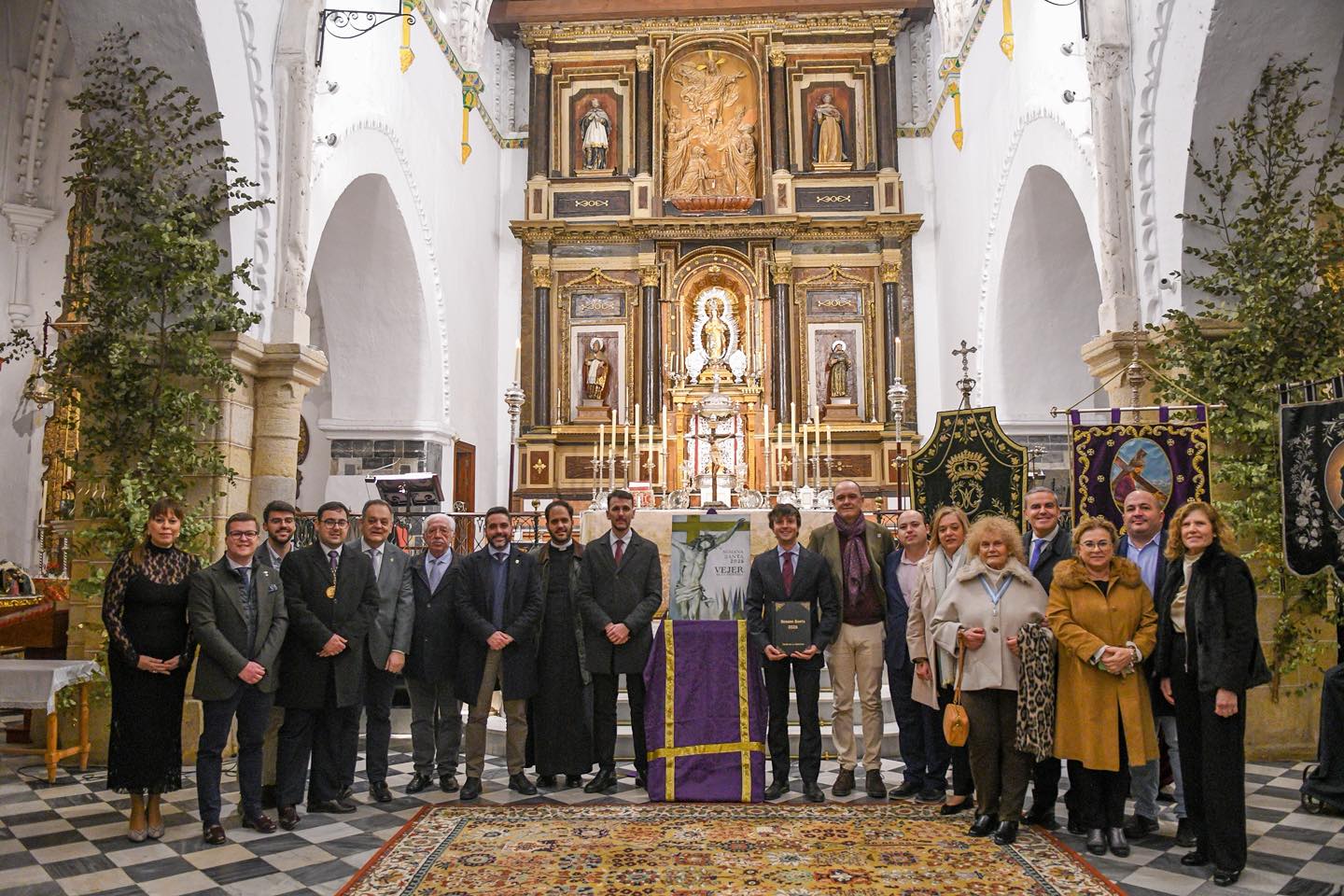 El acto contó con la presencia del alcalde, Antonio González, así como de los concejales Jose Ligero y Christian Soto, mostrando el compromiso del Ayuntamiento con la Semana Santa de Vejer y su arraigada tradición.