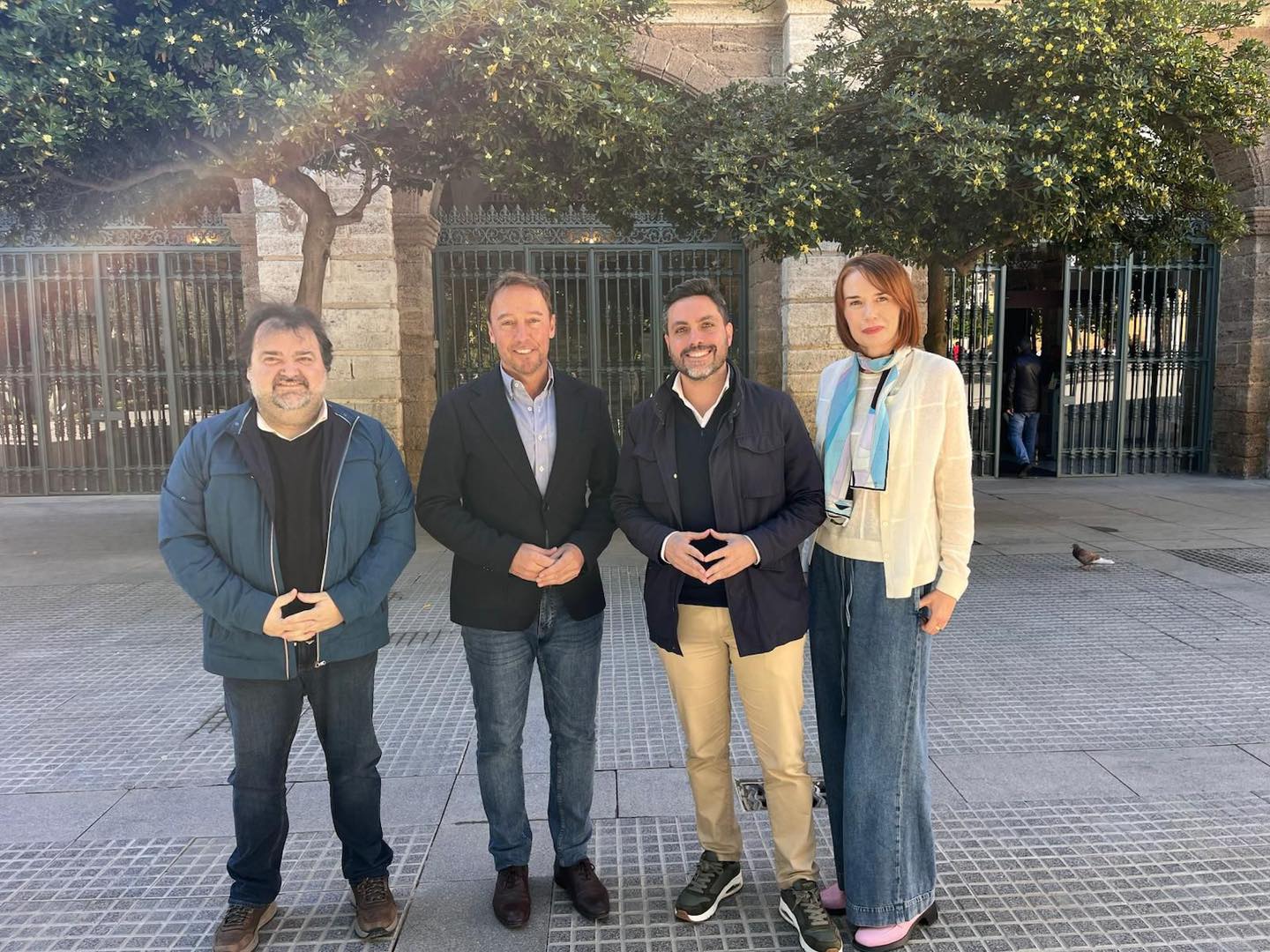 El alcalde de Vejer, Antonio González, junto a los concejales Francisco Javier González y Dominika Paradiso, delegada de Vivienda, ha mantenido un encuentro este martes con el diputado provincial de Vivienda, José Manuel Cossi, y técnicos de la Diputación, con el objetivo de ultimar los detalles y avanzar en los plazos para el inicio de la construcción de 32 viviendas de protección oficial en el municipio.
